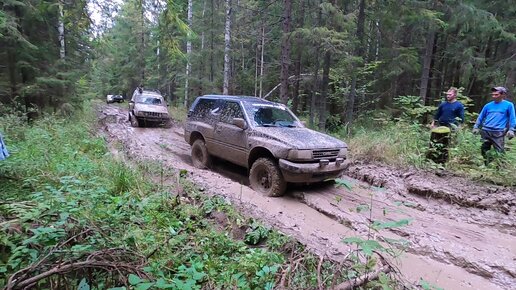 Кто кого тянет на тросу не понятно. То ли OPEL то ли GEEP GRAND CHEROKEE.