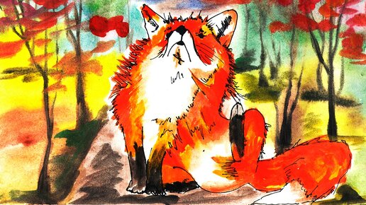 Как нарисовать лису легко. Как нарисовать лису в осеннем лесу. Рисуем осенний пейзаж. Лиса акварелью