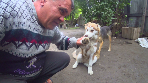 Какие они, собаки деревенского двора. Щенки собак хаски, полны энергии.