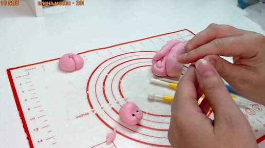 Оформление капкейков свинки из мастики_Design of pig capcakes from mastic