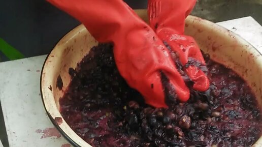 Перчатками мясника давим виноград на домашнее вино!