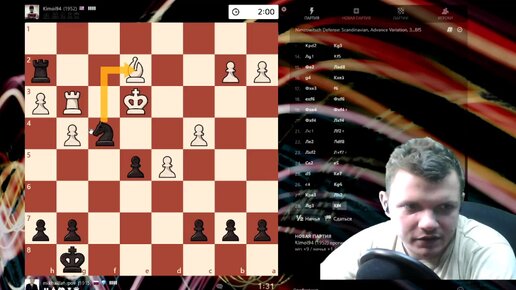 Партия с Кимои. Соперник в чужом цейтноте подставил ладью под вилку.