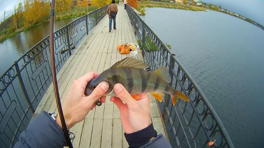 Ловля трёхметровым хеви джигом с пешеходного моста крупных окуней и щук. Осенняя рыбалка спиннингом на Исети в Арамили