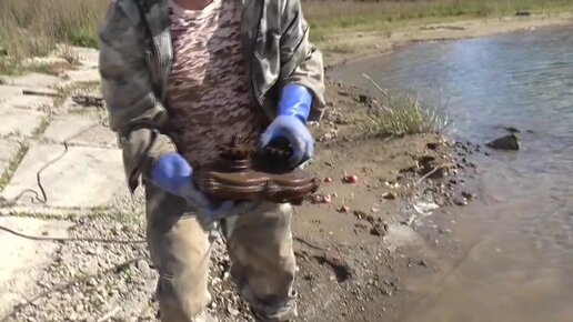 С трудом вытащил со дна водоёма этот неопознанный механизм поисковым магнитом . Показываю находки крупно