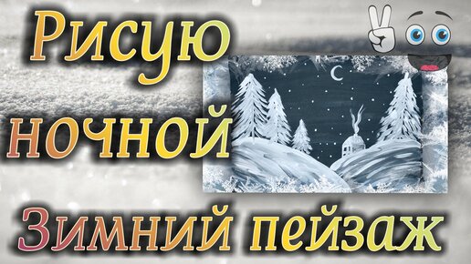 Рисую ночной зимний пейзаж . Рисуем зиму белой и черной краской.