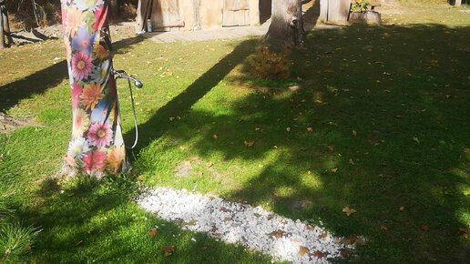 Впервые увидел летний душ из ствола дерева. Хорошая идея для тех, кто подумывает спилить старое дерево на участке.