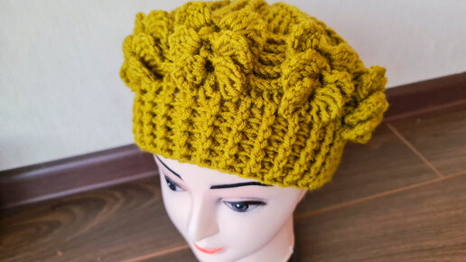 БЕРЕТ С УЗОРОМ *БАБОЧКА* КРЮЧКОМ. МК для начинающих.