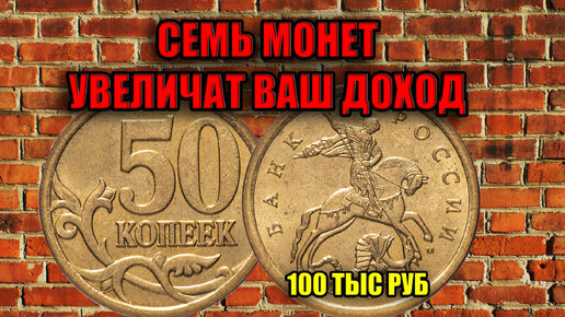 7 Полтинников Пятьдесят копеек России на которые можно жить месяц. Дорогие и редкие монеты.