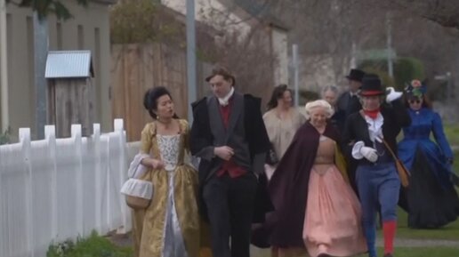 Люди в одежде XIX века гуляют по австралийской глубинке