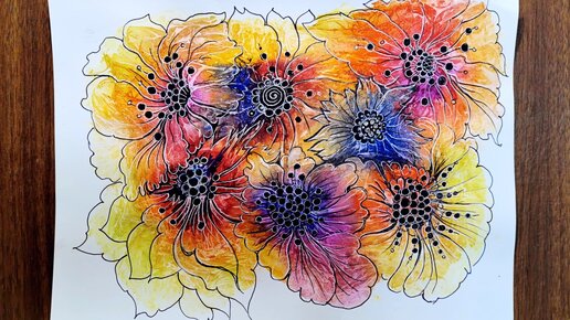 Пищевой плёнкой превращаем пятна акварели в цветы