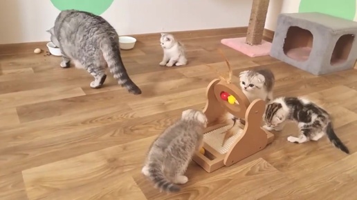 Самый заботливый папа-кот в мире воспитывает своих малышей