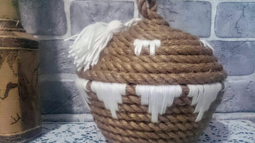 Идея создания корзины из джутового каната с вышивкой