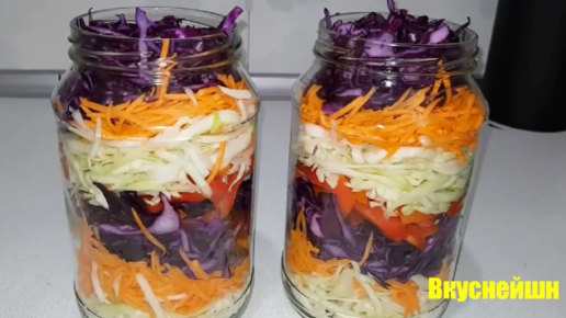 Шинкую капусту мелко и кладу слоями в банку. Делюсь рецептом вкусной и хрустящей капусты за сутки.