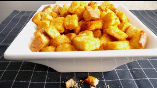 Чесночные домашние сухарики за 7 минут в микроволновке
