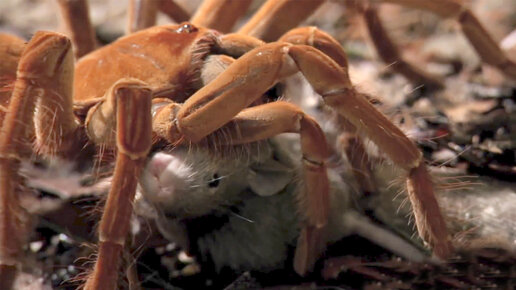 Как охотится самый КРУПНЫЙ паук в мире? Птицеед-Голиаф – гроза мышей, ящериц и даже ядовитых змей!