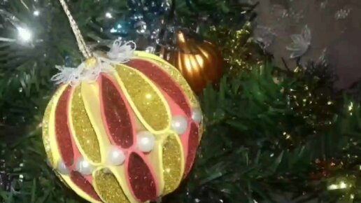 Новогодние шары и снежинки из глиттерного фоамирана.