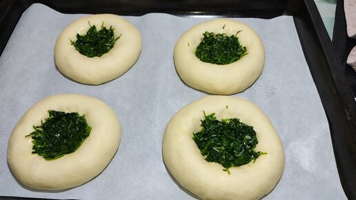 Ватрушки с зеленью и сыром. Зелень можно выбрать любой по своему усмотрению.