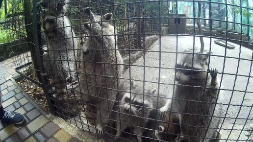 Еноты попрошайки. Ялта, зоопарк «Сказка».