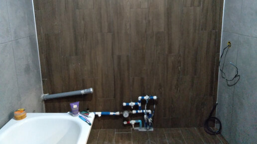 Укладка плитки в ванной закончена. Замыли одну стенку.