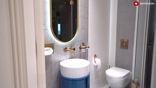 Как дизайнер организовала гостевой санузел с душевой. Получился стильный и сочный интерьер