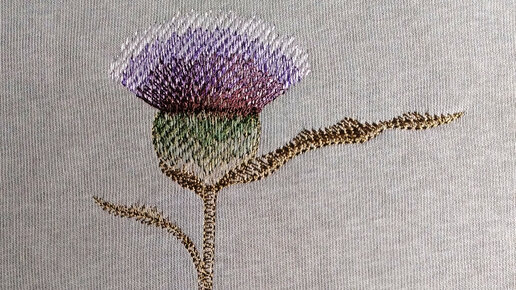 Процесс вышивки чертополоха на свитшоте WildStitch.