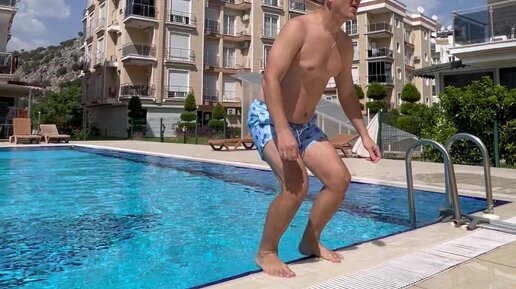 Неудачное сальто от мужа и обзор бассейна на территории, где мы живем в Турции☺️