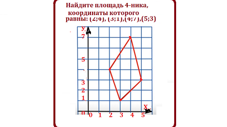 Найти площадь произвольного четырёхугольника, изображённого на линованной бумаге (по координатам)