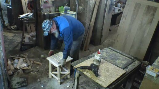 Мастер- класс по изготовлению табурета. Деревянный табурет собираю своими руками в реальном времени.