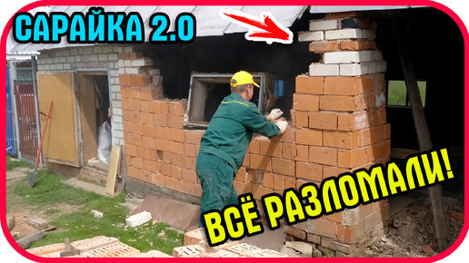 Разбираем стены сарайки и выкладываем из кирпича новые