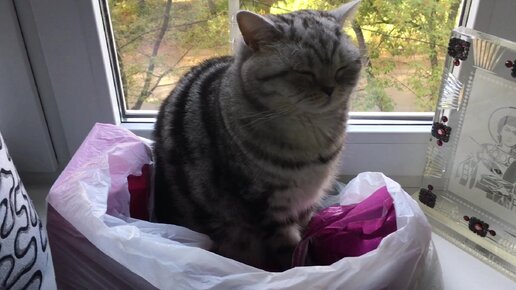 Шанежка расстроилась из-за того, что ей не удалось удобно усесться в пакете, в котором уже что-то лежит