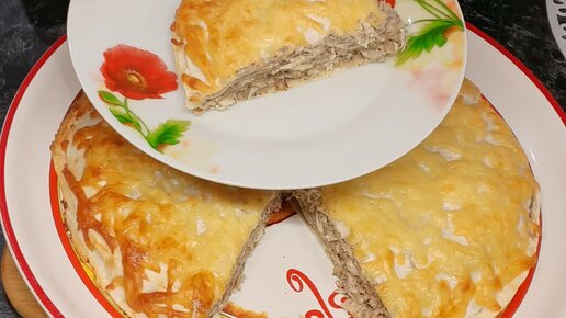 Пирог с грибами и курицей без возни с тестом