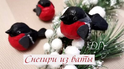 Кусок ваты и клей превратила в красивых снегирей