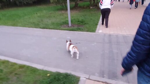 Французский бульдог на прогулке в новом парке