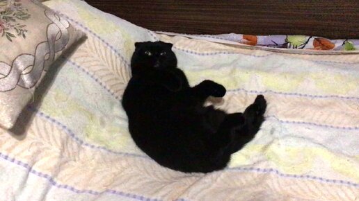 Кот Вася черный возлежит на своем ложе и "разговаривает"