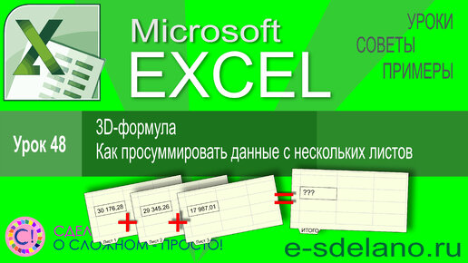 Excel урок 49. Как просуммировать данные с нескольких листов и 3D формула