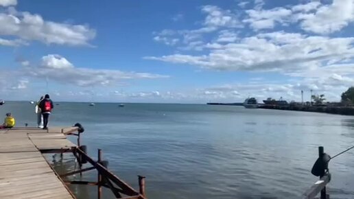 Евпатория солнечная, прогулка у яхт -клуба, очень много мальков рыбы в море, кормим хлебом .