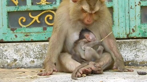 Маленькая милая обезьянка успевает везде, даже со своей новой так называемой мамой