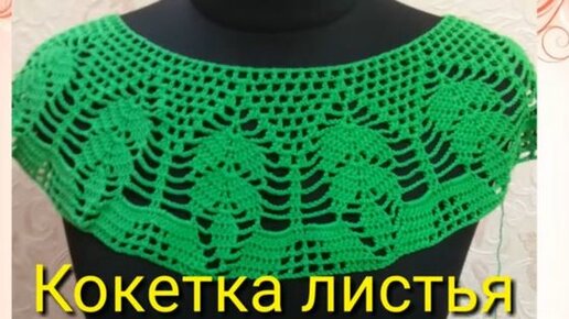 Ажурная круглая кокетка крючком узором Листья Подробный мастер класс по вязанию крючком.