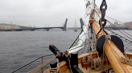 Питер, День туризма, парусники проходят под разведенными мостами. Видео с палубы Леди Л.