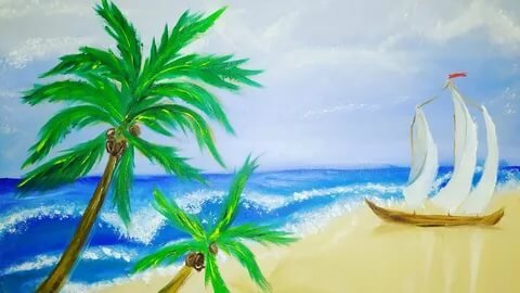 Рисую океан и побережье острова. Картина маслом