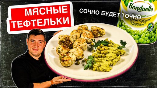 Ужин за 5 минут! Meatballs, куриные тефтельки, фрикадельки с пюре из зелёного горошка.