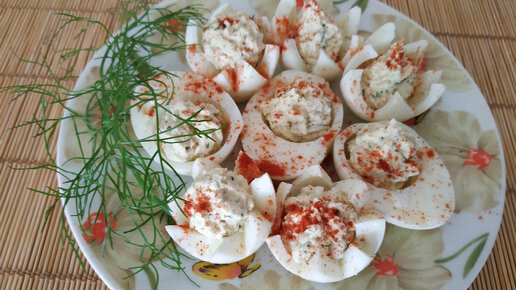 Фаршированные яйца, рецепт с двумя начинками - с курицей, и с тунцом