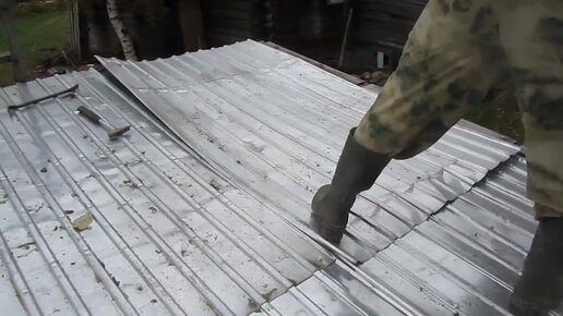 Перестилаем крышу дровяника.