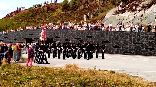 Оркестр Королевской гвардии Норвегии выступает на Атлантической дороге. Звучит "Прощание славянки"