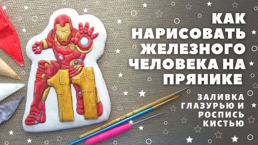 Как нарисовать железного человека на прянике. Роспись пряников. Заливка глазурью и роспись кистью