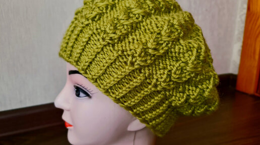 Теплый берет спицами.