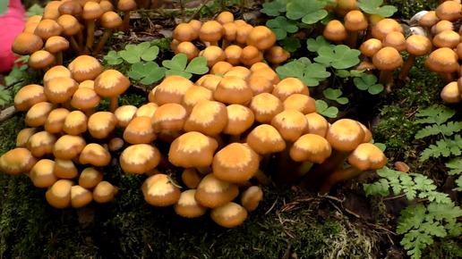 Нашли огромный белый гриб и целый пенек говорушек в лесу, в Подмосковье.