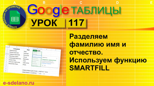 Уроки Google Sheets. Урок 117. Разделяем фамилию, имя и отчество. Используем Smartfill