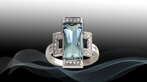 Кольцо из белого золота с крупным чистым аквамарином и бриллиантами. Ручная ювелирная работа.