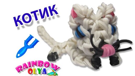 КОТИК из резинок на рогатке. Фигурки из резинок | Cat Rainbow Loom